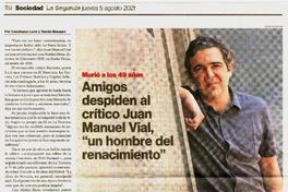 Amigos despiden al crítico Manuel Vial, "un hombre del renacimiento" [artículo] Tomás Basaure.