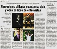Narradores chilenos cuentan su vida y obra en libro de entrevistas [artículo] / Patricia Espinosa. Las Últimas Noticias (Diario : Santiago, Chile)-- abr. 24, 2021, p. 26. .