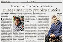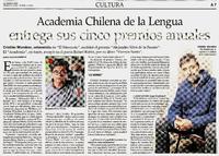 Academia Chilena de la Lengua entrega sus cinco premios anuales [entrevista] [artículo] : María Soledad Ramírez R.