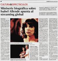 Miniserie biográfica sobre Isabel Allende apunta al streaming global [artículo] / Patricia Reyes. La Tercera (Diario : Santiago, Chile)-- ene. 28, 2021, p. 25. .
