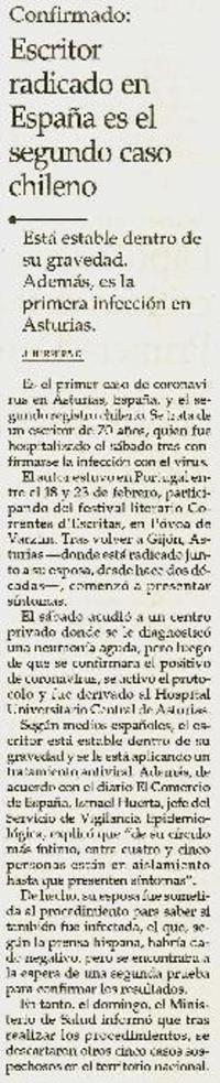 Confirmado : Escritor radicado en España es el segundo caso chileno [artículo] J. Herrera C.
