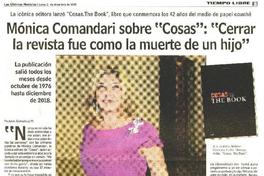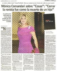 Mónica Comandari sobre "Cosas" : "Cerrar la revista fue como la muerte de un hijo" [entrevista] / [artículo] : Paulina González M. Las Últimas Noticias (Diario : Santiago, Chile)-- dic. 21, 2020, p. 39. .