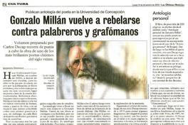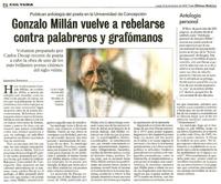 Gonzalo Millán vuelve a rebelarse contra palabreros y grafómanos [artículo] Leonardo Sanhueza.