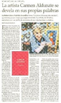 La artista Carmen Aldunate se devela en sus propias palabras [artículo] / María Soledad, Ramírez R. El Mercurio (Diario : Santiago, Chile)-- dic. 21, 2020, p. A6. .