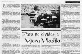 Para no olvidar a Vjera Vladilo [artículo] / Mario Cortes F. El Mercurio (Diario : Santiago, Chile)-- abr. 30, 2000, p. 9. .