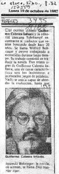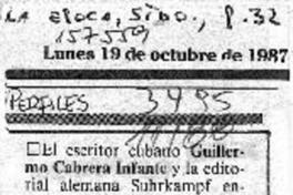 Guillermo Cabrera Infante. [artículo] La Época (Diario : Santiago, Chile)-- oct. 19, 1987, página 32. 1 página : ilustración en blanc y negro. .