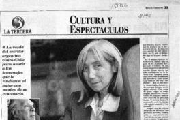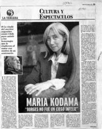 María Kodama : "Borges no fue un ciego infeliz" [artículo] / Andrés Gómez. La Tercera (Diario : Santiago, Chile)-- mayo 25, 1999, página 33. 1 página : ilustraciones en blanco y negro. .