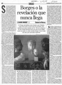 Borges o la revelación que nunca llega [artículo] / Claudio Magris. La Época (Diario : Santiago, Chile)-- ago. 21, 1994, páginas 20-21 (suplemento). 2 páginas : ilustraciones en blanco y negro. .