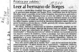 Leer al hermano de Borges [artículo] / Marcelo Novoa. El Mercurio (Diario : Valparaíso, Chile)-- feb. 9, 1994, página B6. 1 página. .