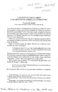 "Las ruinas circulares" una reflexión sobre la literatura [artículo] / Carmen R. Rabell. Revista Chilena de Literatura (Revista : Santiago, Chile)-- no. 31 (abril 1988), páginas 95-104. 10 páginas. .