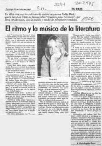 El ritmo y la música de la literatura [artículo] / María Angélica Rivera. El País (Diario : Santiago, Chile)-- jul. 12, 1987, p. 15. .