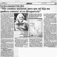 "Mis cuentos nacieron para que mi hija me pudiera conocer si yo desaparecía" [entrevista] / [artículo] : Ana María Guerra Y. La Segunda (Diario : Santiago, Chile)-- jul. 8, 1987, página 21. 1 página : ilustraciones en blanco y negro. .
