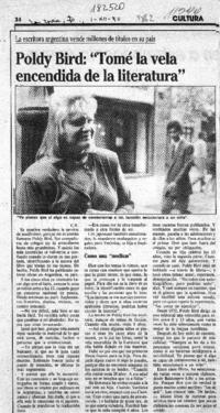 Poldy Bird : "Tomé la vela encendida de la literatura" [artículo] / C. R. La Época (Diario : Santiago, Chile)-- dic. 1, 1990, página 34. 1 página : ilustración en blanco y negro. .