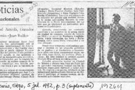 Juan José Arreola, ganador del premio "Juan Rulfo". [artículo] El Mercurio (Diario : Santiago, Chile)-- jul. 5, 1992, p. 3 (suplemento). .