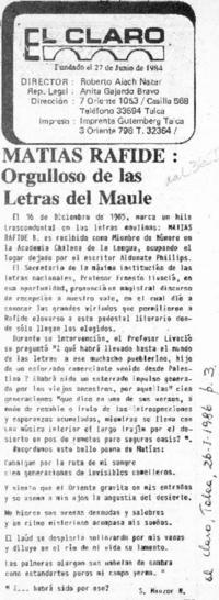Matías Rafide, orgullo de las letras del Maule [artículo] S. Manzor M.