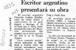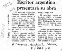 Escritor argentino presentará su obra. [artículo] El Mercurio (Diario : Santiago, Chile)-- mayo 9, 1988, p. 4. El Mercurio (Diario : Calama, Chile)-- mayo 9, 1988, p. 4. .