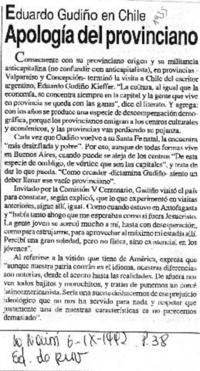 Apología del provinciano, Eduardo Gudiño en Chile. [artículo]
