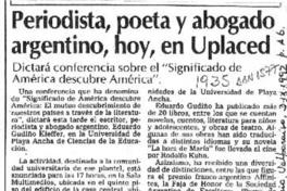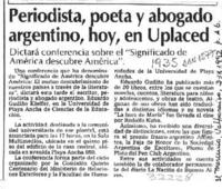 Periodista, poeta y abogado argentino, hoy, en Uplaced. [artículo] El Mercurio (Diario : Valparaíso, Chile)-- sept. 3, 1992, p. A6. .