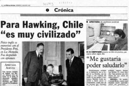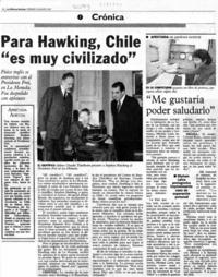 Para Hawking, Chile "es muy civilizado". [artículo] Las Últimas Noticias (Diario : Santiago, Chile)-- ago. 15, 1997, p. 8. .