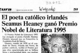 El poeta católico irlandés Seamus Heaney ganó Premio Nobel de Literatura 1995. [artículo] La Segunda (Diario : Santiago, Chile)-- oct. 5, 1995, p. 51. Incluye retrato .