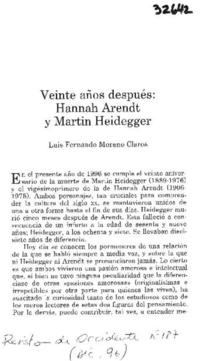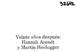 Veinte años después: Hannah Arendt y Martin Heidegger [artículo] Luis Fernando Moreno Claros.
