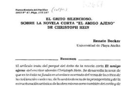 El grito silencioso, sobre la novela corta "El amigo ajeno" de Christoph Hein [artículo] Renate Decker.