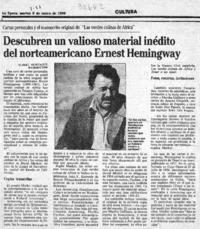 Descubren un valioso material inédito del norteamericano Ernest Hemingway [artículo] Albert Montagut.