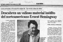 Descubren un valioso material inédito del norteamericano Ernest Hemingway [artículo] / Albert Montagut. La Época (Diario : Santiago, Chile)-- ene. 9, 1990, p. 27. .