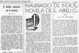 Naufragio de indios, novela de E. Ebreu G [artículo]/ Sánchez, Luis Alberto. El Mercurio (Diario : Santiago, Chile)-- feb. 24, 1952, p. 7. .