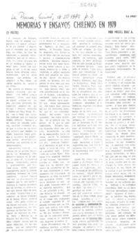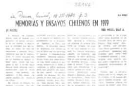 Memorias y ensayos chilenos en 1979 [artículo] / Miguel Diaz A. La Prensa (Diario : Curicó, Chile)-- mar. 12, 1980, p. 3. .
