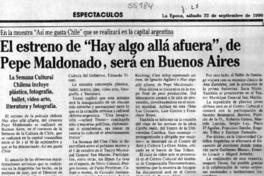 El estreno de "Hay algo allá afuera", de Pepe Maldonado, será en Buenos Aires [artículo]. La Época (Diario : Santiago, Chile)-- sept. 22, 1990, p. 28. .
