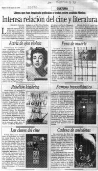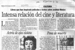 Intensa relación del cine y la literatura: libros que han inspirado películas o textos sobre análisis fílmico [artículo] / Elizabeth Orellana. La Época (Diario : Santiago, Chile)-- mar. 24, 1998, p. 33. .