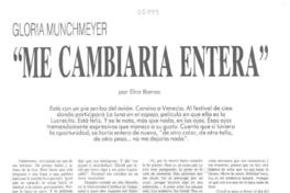 Gloria Munchmeyer "Me cambiaría entera" [entrevista] [artículo] : Elna Barros.