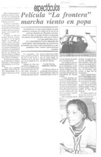 Película "La frontera" marcha viento en popa [artículo] Fortin Mapocho (Diario : Santiago, Chile)-- sept. 27, 1990, p. 22. .