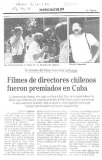 Filmes de directores chilenos fueron premiados en Cuba [artículo] La Época (Diario : Santiago, Chile)-- dic. 19, 1987 p. 28. .