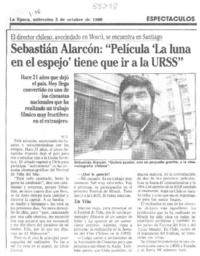 Sebastián Alarcón: "Película La Luna en el espejo tiene que ir a la URSS" [entrevista] / [artículo] : M. S. La Época (Diario : Santiago, Chile)-- oct. 3, 1990, p. 35. .