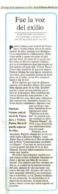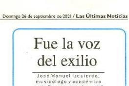 Fue la voz del exilio [artículo] / José Manuel Izquierdo. Las Últimas Noticias (Diario : Santiago, Chile)-- sept. 26, 2021, p. 24. .