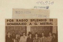 Por Radio Splendid se homenajeó a G. Mistral. [artículo]