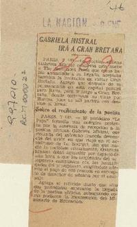 Gabriela Mistral irá a Gran Bretaña. [artículo] La Nación-- ene. 8, 1946, s/n. .