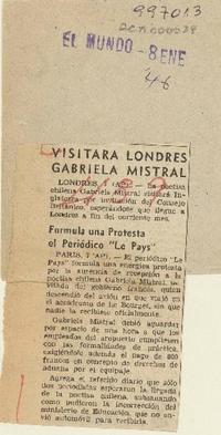 Visitará Londres Gabriela Mistral. [artículo] El Mundo-- ene. 8, 1946, s/n. .