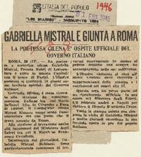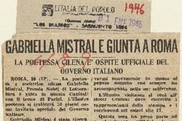 Gabriella Mistral e giunta a Roma. [artículo] L'Italia del Popolo (Diario : Argentina)-- ene. 31, 1946, s/n. .