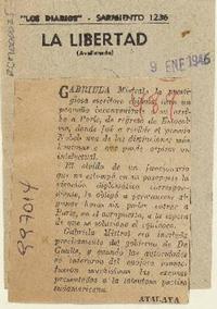 Gabriela Mistral [artículo] / Atalaya. La Libertad (Diario : Avellaneda, Argentina)-- ene. 9, 1946, s/n. .