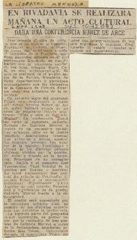 En Rivadavia se realizará mañana un acto cultural. dará una conferencia Nuñez de Arce. [artículo]