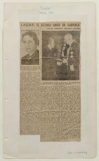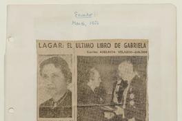 Lagar: el último libro de Gabriela [artículo] / Adelaida Velazco Galdos. El Telégrafo (Diario : Guayaquil, Ecuador)-- mar. 1956, p. s/n. .