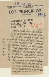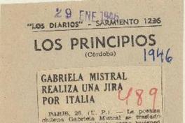 Gabriela Mistral realiza una jira por Italia. [artículo] Los Principios (Diario : Córdoba)-- ene. 26, 1946, s/n. .