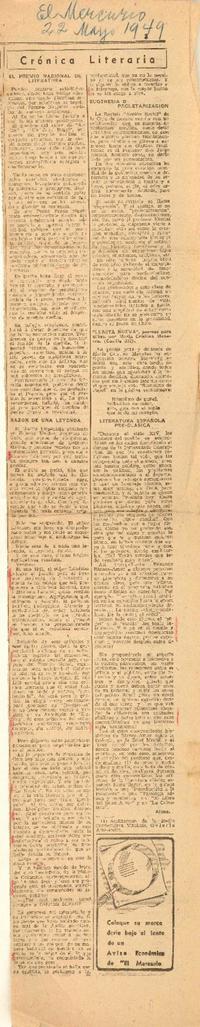 El premio nacional de literatura [artículo] / Alone. El Mercurio (Diario : Santiago, Chile)-- mayo 22, 1949, p. 3. .