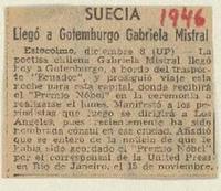 Llegó a Gotemburgo Gabriela Mistral. [artículo] La Prensa (Diario : Buenos Aires, Argentina)-- dic. 9, 1946. .