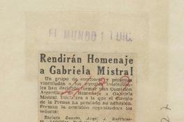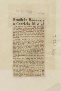 Rendirán homenaje a Gabriela Mistral. [artículo] El Mundo (Diario : Buenos Aires, Argentina)-- dic. 11, 1946, s/n. .