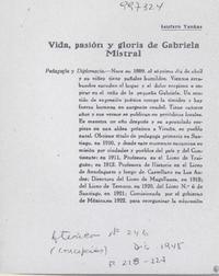 Vida, pasión y gloria de Gabriela Mistral [artículo] / Lautaro Yankas. Atenea (Revista : Concepción, Chile)-- no. 246, (Diciembre 1945), p. 218-227. .