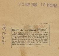 Busto de Gabriela Mistral. [artículo] La Hora (Diario : Santiago, Chile)-- nov. 22, 1946, s/n. .